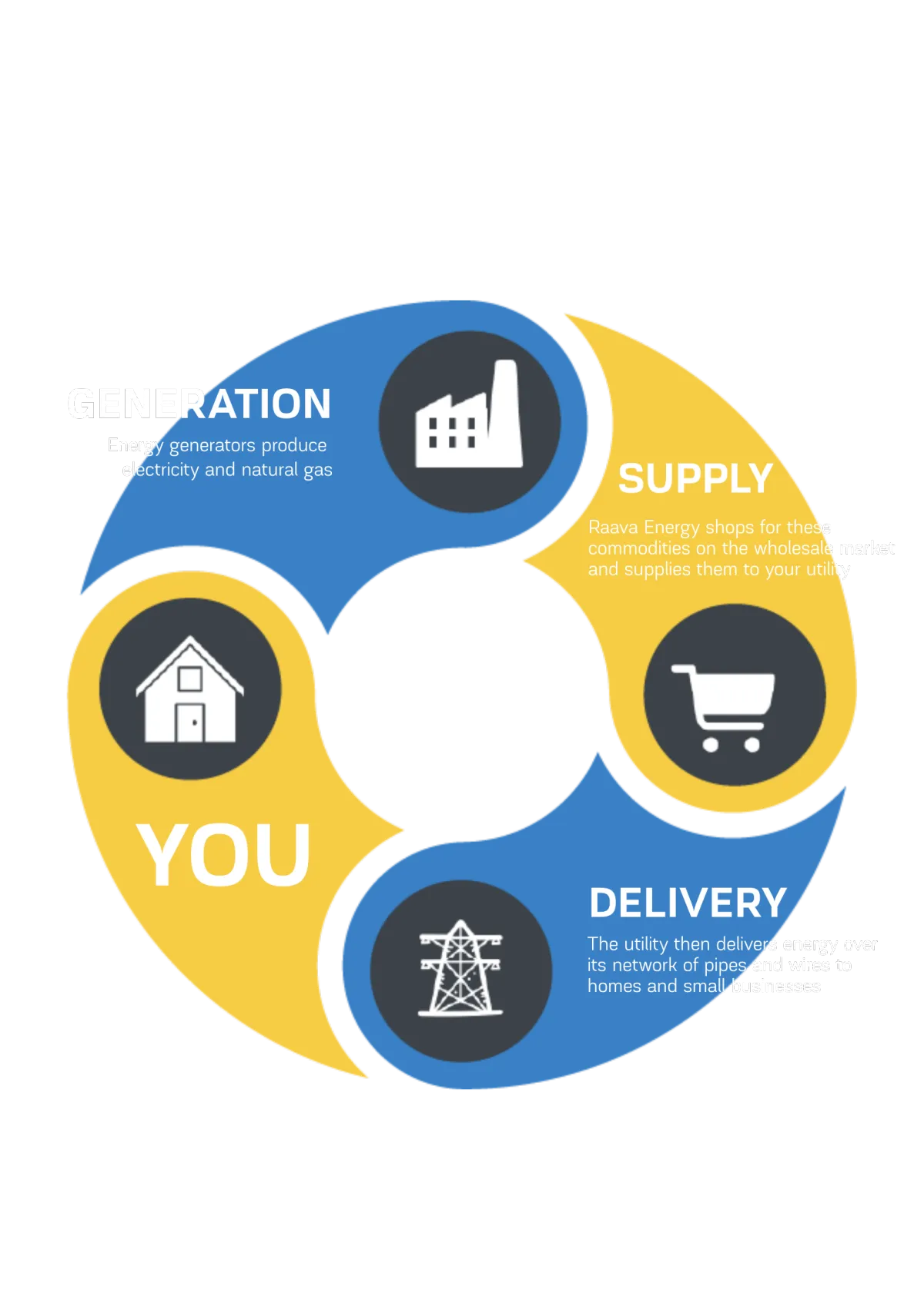 No. Switching is a purely administrative change—there is no interruption of service. Your local utility still delivers the energy and handles outages and emergencies. In most cases, you’ll continue to receive one bill from your utility, and you’ll simply see Raava Energy listed as your supplier on the supply portion of the bill.